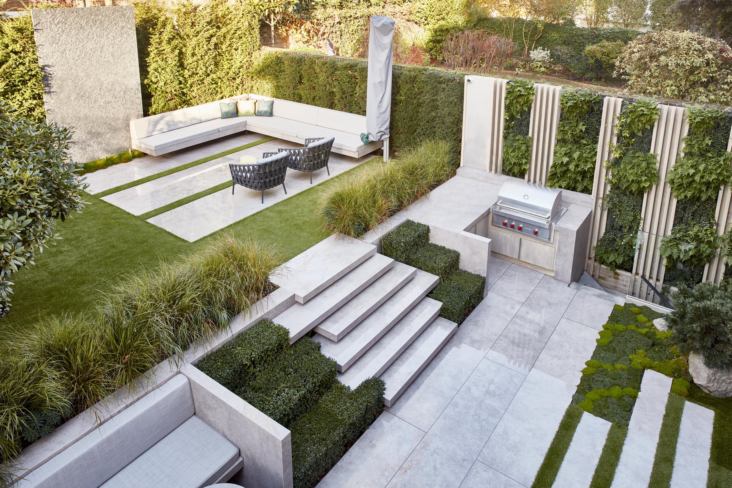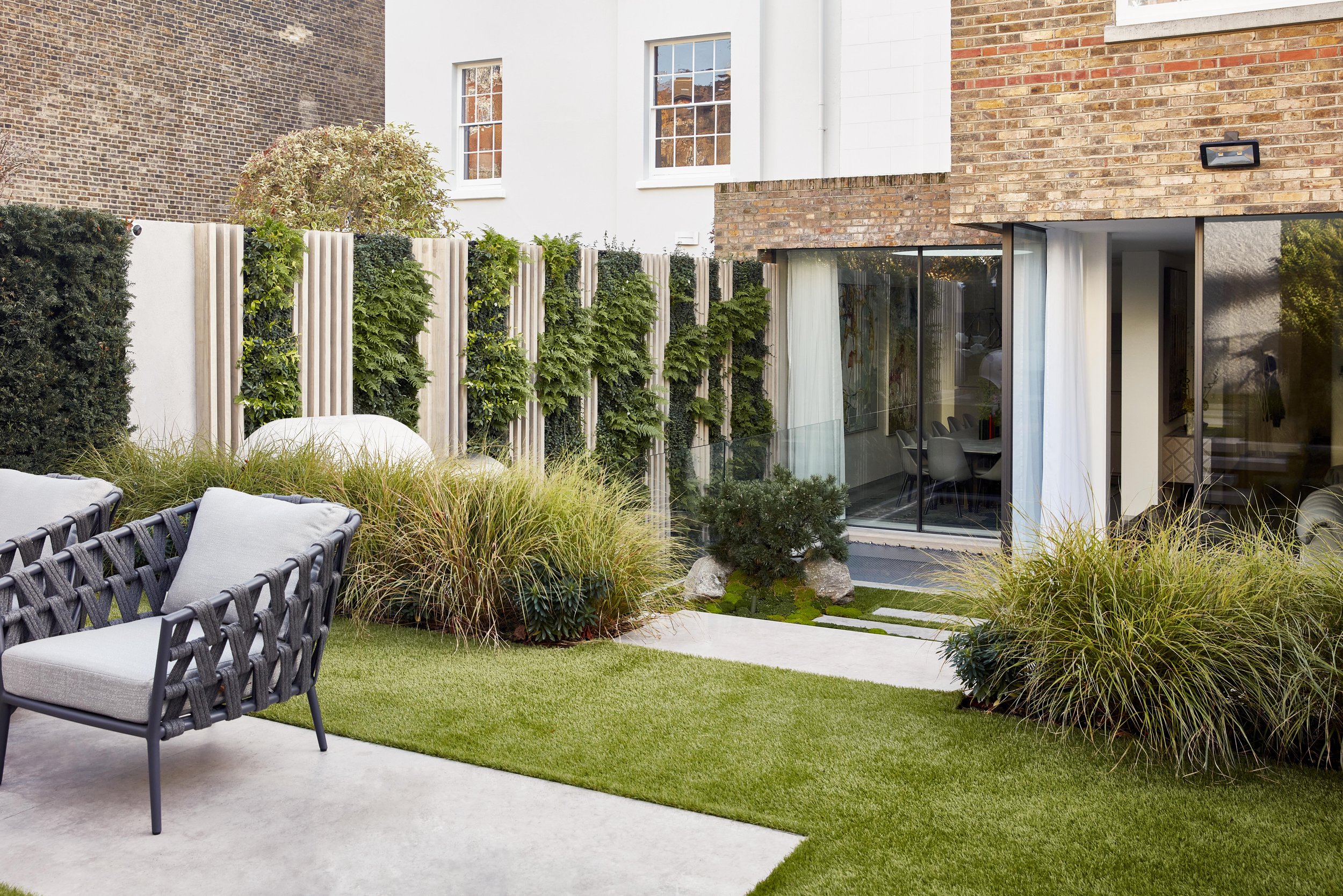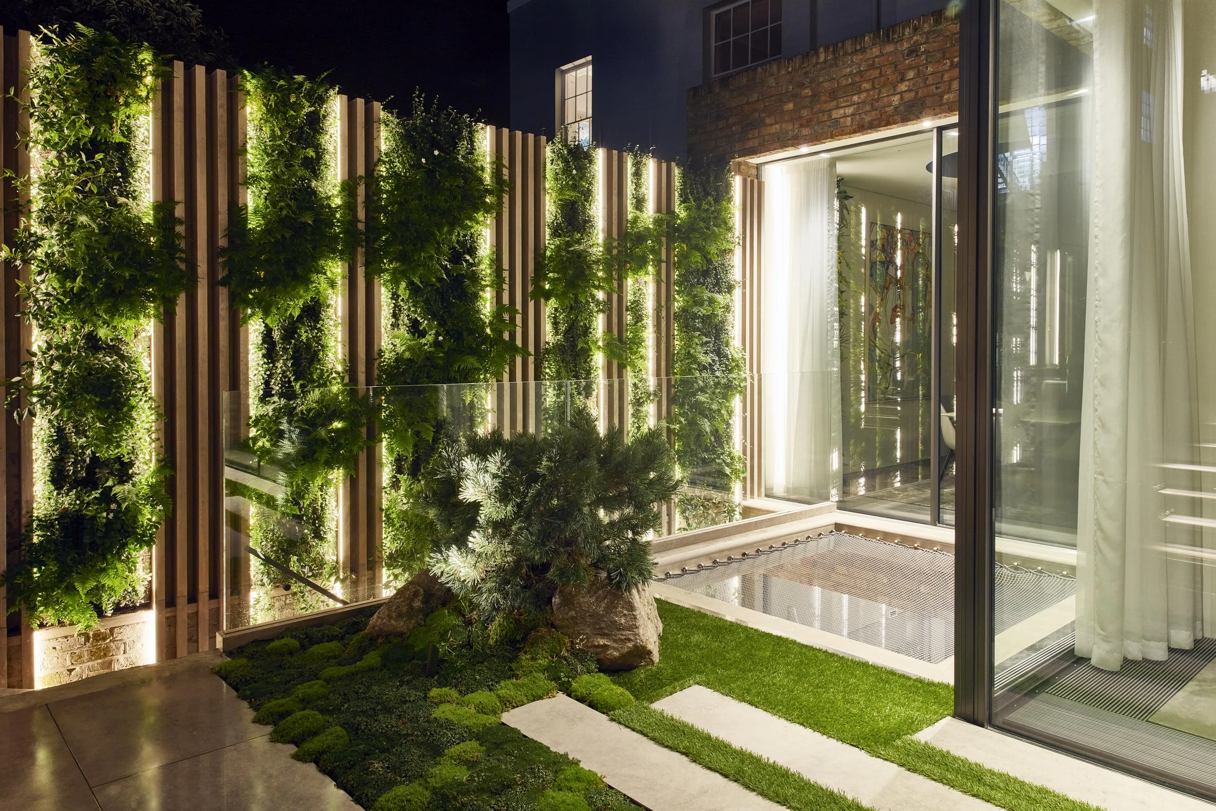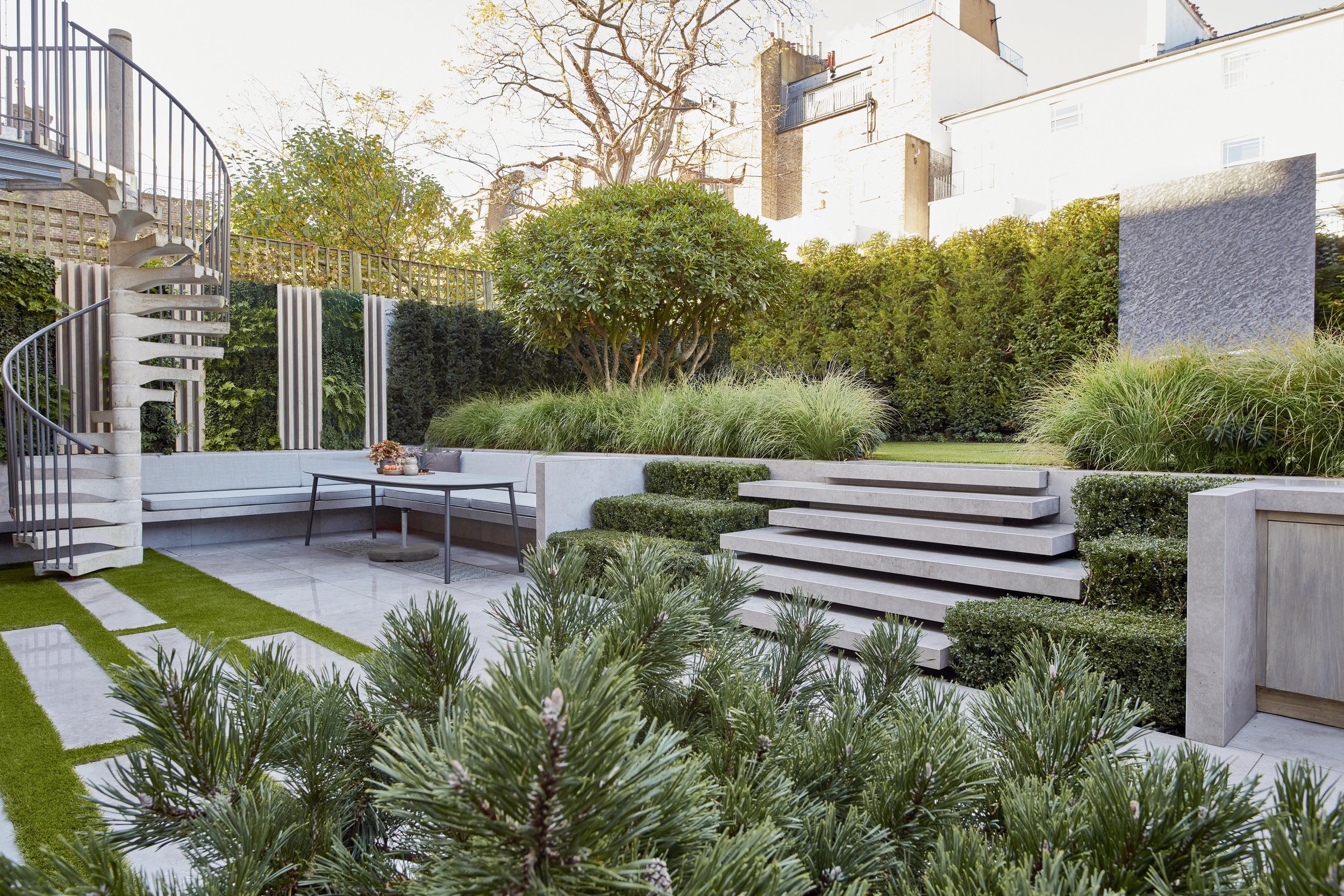 Designed as a seamless extension of the minimalist interiors by Staffan Tollgård, this North London residence embraces clean lines and restrained planting. This family home in St. John’s Wood needed nothing more, or less, than simplicity used with intention. Simple, unique, yet striking was the brief. A loft‑net was added for children, young and old, transforming an otherwise unused light‑well into a playful space. An array of greens ensures year‑round evergreen interest, keeping the garden visually consistent from summer through winter.