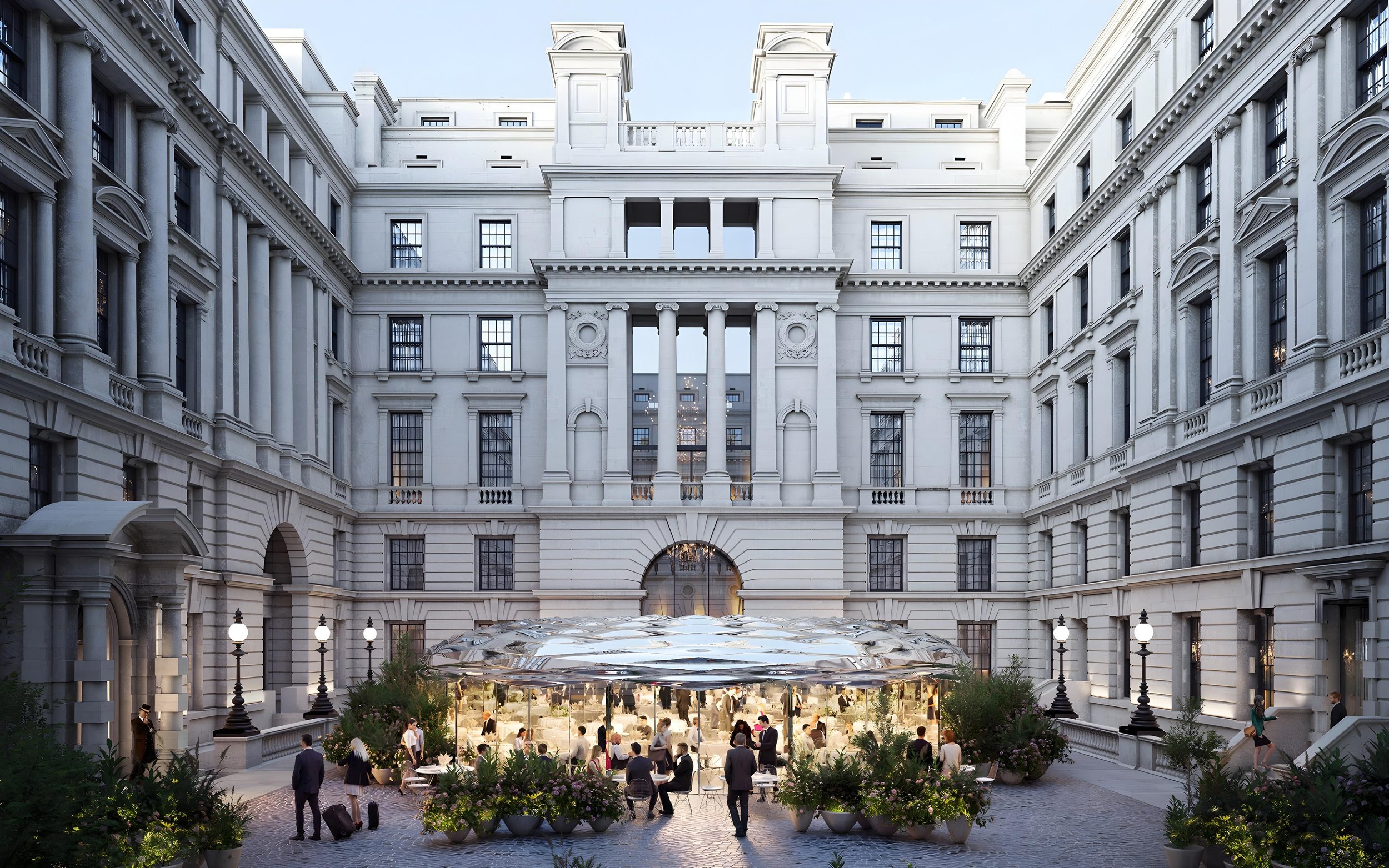 The inimitable historical profile of this iconic edifice establishes the groundwork for its renaissance, to be realized as both a new Raffles Hotel and OWO Residences. Throughout the building, a series of outdoor spaces, gardens, roof terraces, and courtyards punctuate the structure. Some of these spaces seek harmony with the intangible tradition of the architecture, while others are infused with dramatic contemporary aesthetics, achieved through a selection of modern design and materials. Upon the completion of the design and construction process, each and every corner oft his magnificent building will experience a rebirth, thereby acquiring a newfound vibrancy that will eventually weave a new and thrilling narrative.