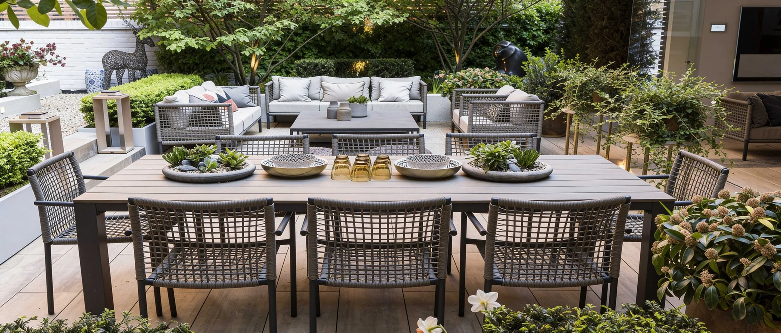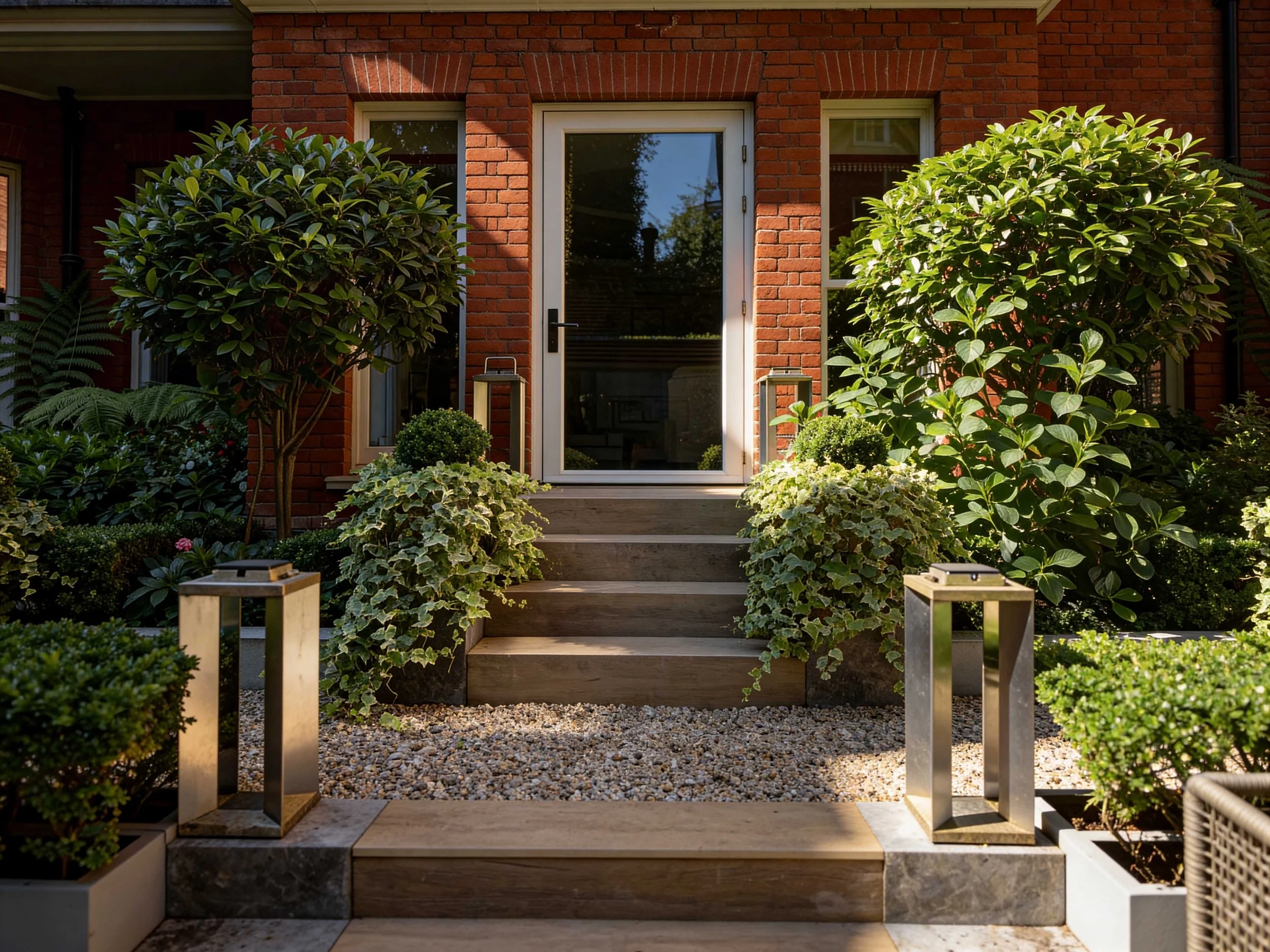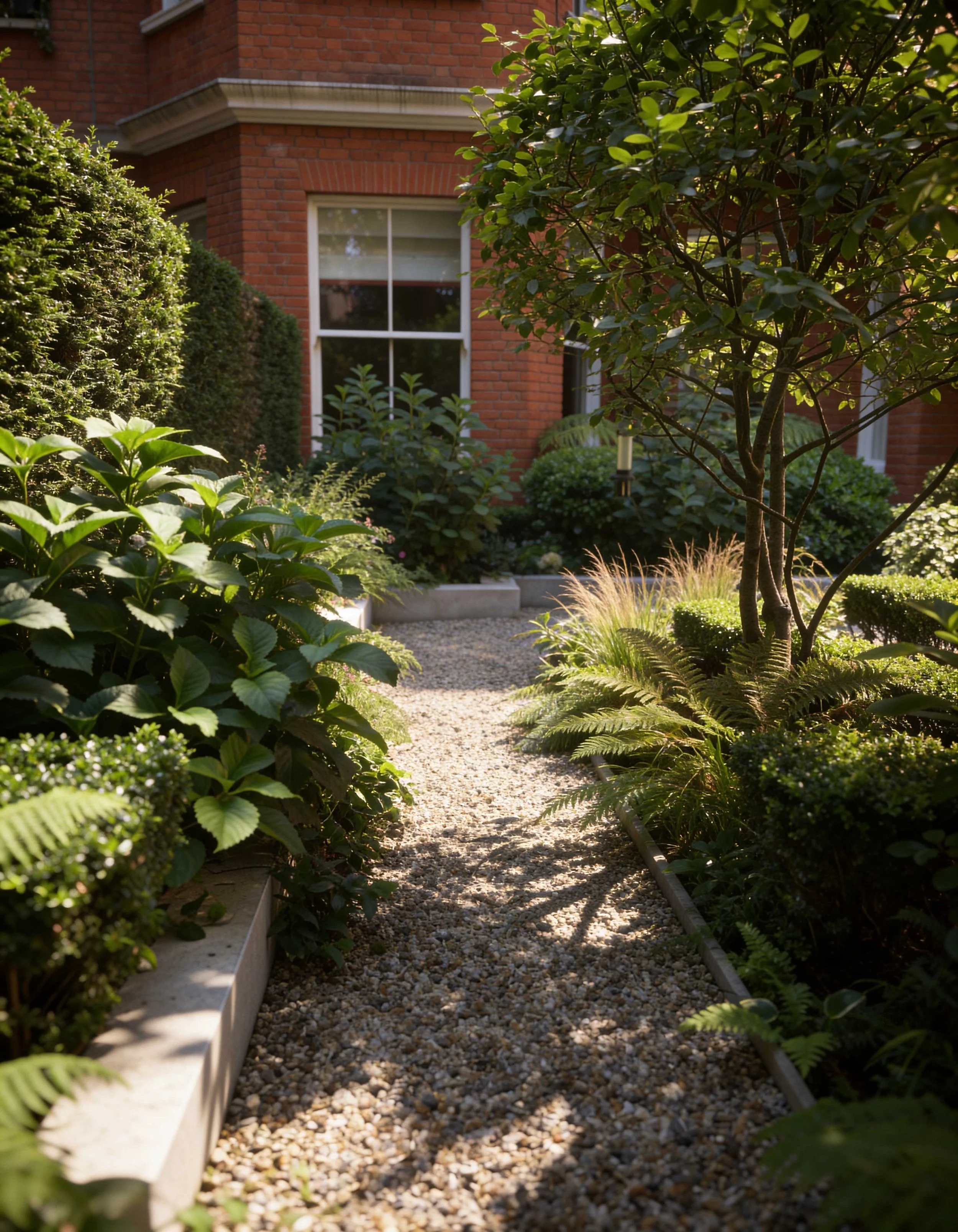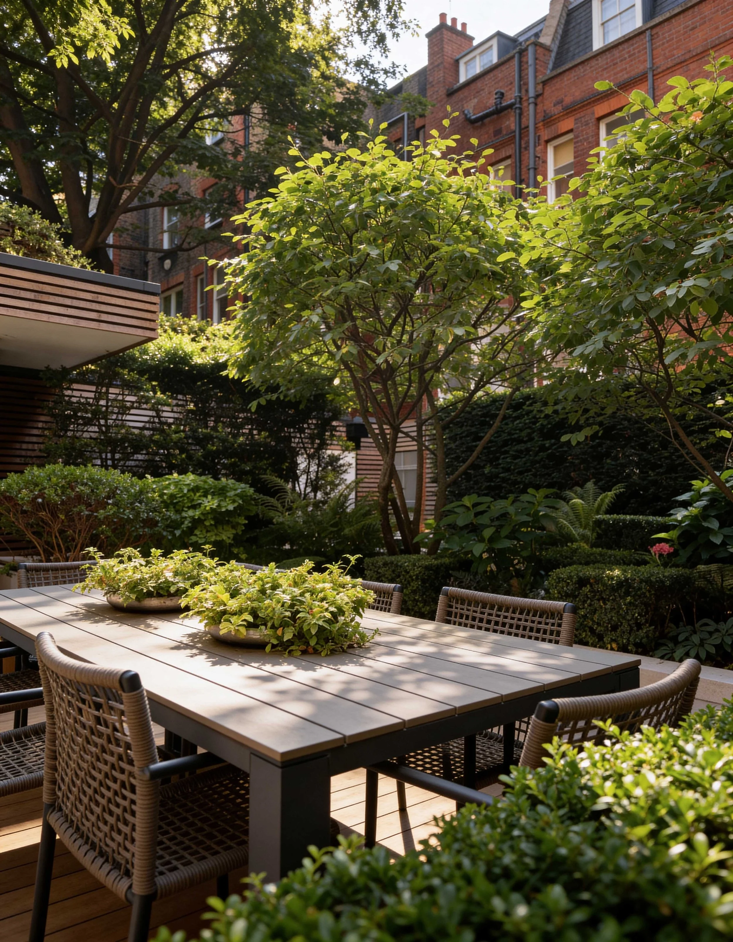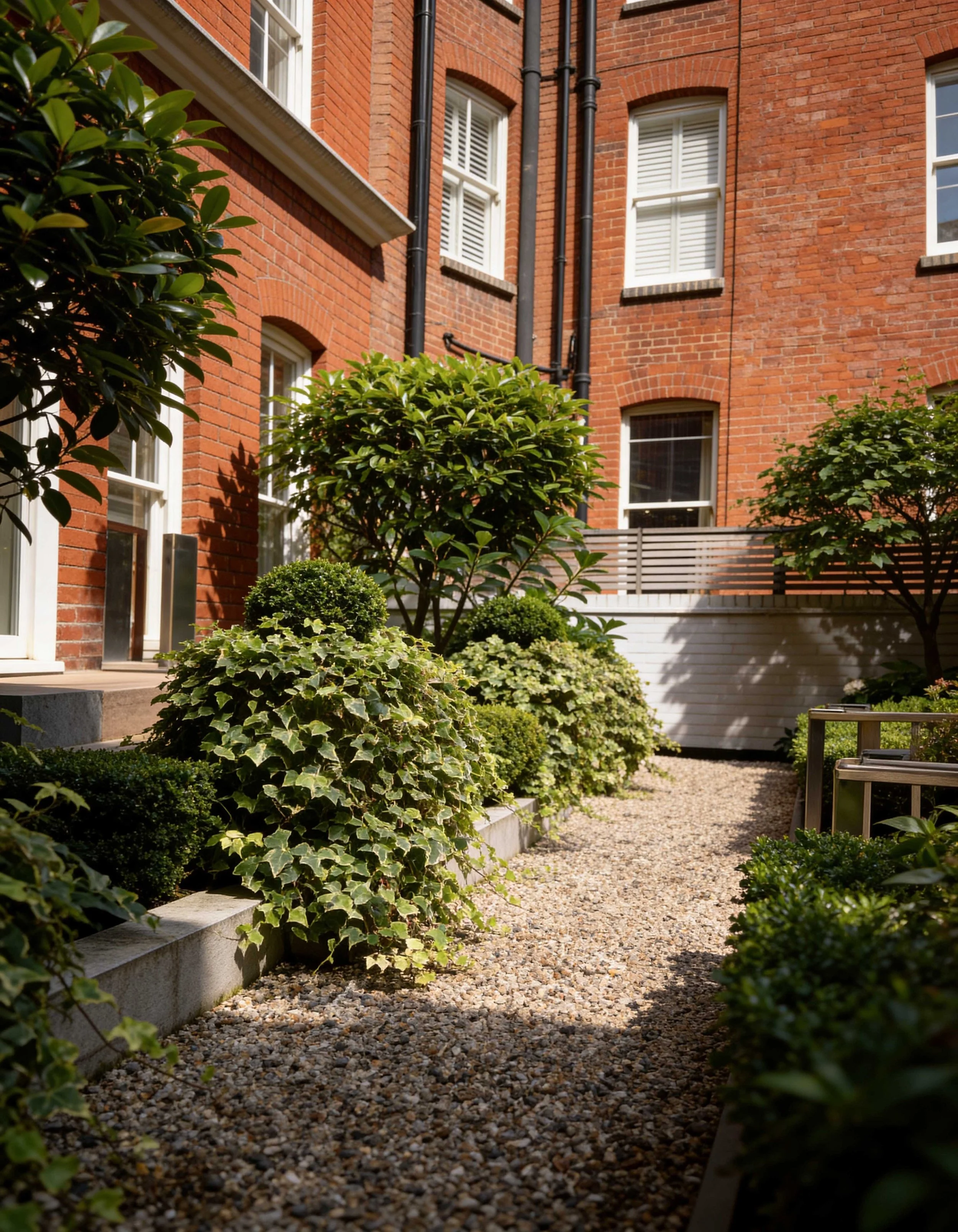 The Courtyard gardens at this stunning property in the heart of Chelsea links the main residence with a glorious outdoor room complete with lounge, kitchen and service area. Multi-stemmed trees provided privacy from its neighbours allowing the clients to dine and relax in the lounge area in more comfort. A little glamour and drama was introduced with a concealed roaring fire-pit under the paving. Structured planting and clipped hedging frame the space, softening the surrounding hard landscape. A generous terrace creates a relaxed setting for outdoor dining and everyday use.